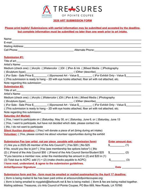 Petite Gallerie forms will be distributed to the libraries and submissions will be collected at a later date.